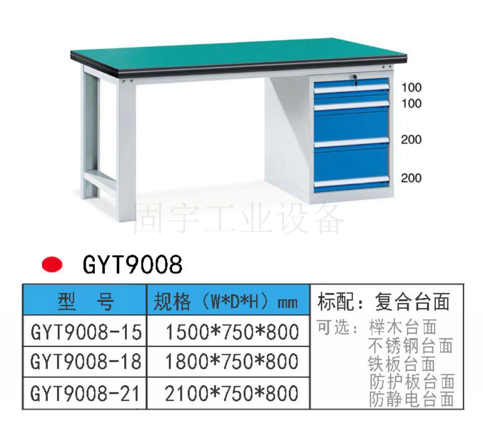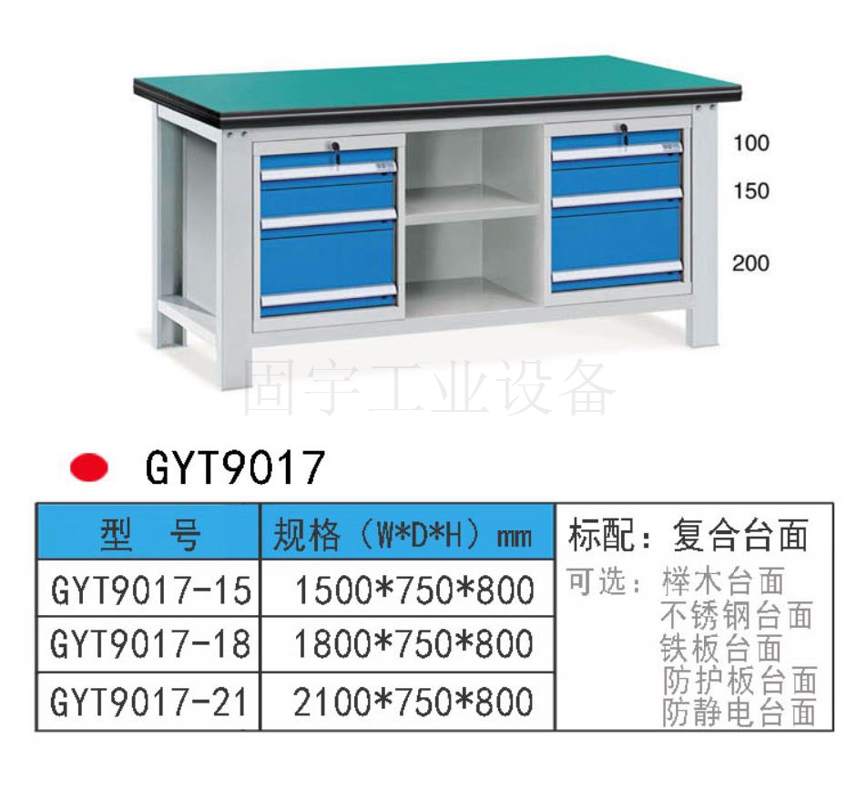 工作臺采用優質冷扎板精工制作而成,堅固的工作桌框架,牢固平穩,可使工作桌承重1000kg;多種工作桌面選擇,可配合不同使用的要求;工具吊柜(箱),側柜(箱)燈架,調節腳杯,,外形美觀;層板,抽屜質量上乘,承重大,抽屜內可根據需要任意分隔;節約空間,適用性強。 范圍 工作臺適合于模具、鉗工、檢測、維修、組裝等各種不同應用場合,具有良好的耐腐蝕性,耐臟性,抗沖擊性和承重能力強。桌面經特殊處理,具有防腐、抗沖擊力強等特點,多種桌面的選擇,可配合不同的使用要求;所配置的抽屜、柜門方便使用者存儲工具;桌角上預留電源孔,方便安裝電源插座。工作臺(桌)分為輕型(可承重300公斤),中型和重型工作臺(桌)可承重1000公斤及特制的工作臺。可根據需要靈活地配置各種吊柜、單柜、雙柜等,可加裝掛板,電器板,燈頂板、調節腳杯,輪子,擱板等桌上部件,具有多種選擇,能夠滿足各種工位的需求。 工作臺材質采用優質冷軋鋼板,表面采用靜電噴涂處理而制成,堅固的工作桌框架,牢固平穩,可使工作桌臺面均勻承重達到1000kg。桌面有多種材質組成,適用于各行業辦公場所。可配合工具柜,吊柜,掛板,單開門柜使用。抽屜、承辦承重大,性能好,抽屜里可根據需求配置分隔條 工作臺分類:根據臺面的不同分為:櫸木工作臺、鋼板合成工作臺、防靜電工作臺、高分子工作臺;根據承重的不同分為:輕型工作臺、中型工作臺、承重型工作臺;根據功能的不同分為:多功能工作臺、帶吊柜工作臺等等。 臺面優勢 復合臺面特性臺面平整度高,撓曲度為0.8mm。表面2mm厚度為高分子材料,使臺面耐酸堿、耐磨、耐油。臺面采用高壓纖維板,使臺面更具有抗沖擊性。特別的圓弧桌角,不易受撞擊損壞。高強度塑膠包邊堅固、實用、不易損壞、不易脫落。櫸木桌面特性桌板使用櫸木與防水膠經加壓制造而成。表面光滑平整,美觀不易變型,耐油、耐熱、耐酸、耐堿,適合一般工廠作業與精密模具維修,儀器置放與檢測等用途。不銹鋼包面特性桌板使用高壓合成板,表面包1-2mm砂面不銹鋼板,以達美觀耐用。耐高溫、耐磨損、耐油、使用壽命長,為多功能桌板,適合一般工廠、食品業、研究室、電子廠無塵室使用。輕型工作臺可承重300kg-500KG防火板臺面特性輕巧、美觀、耐磨、防火。層壓板臺面特性工作桌面平整,變型小,強度高,抗沖擊性好。 標準顏色 產品顏色 標準的顏色可分為6種:淺藍色(RAL5015), 電腦灰(RAL7035), 機床綠(RAL6011),深藍色(RAL5017)。